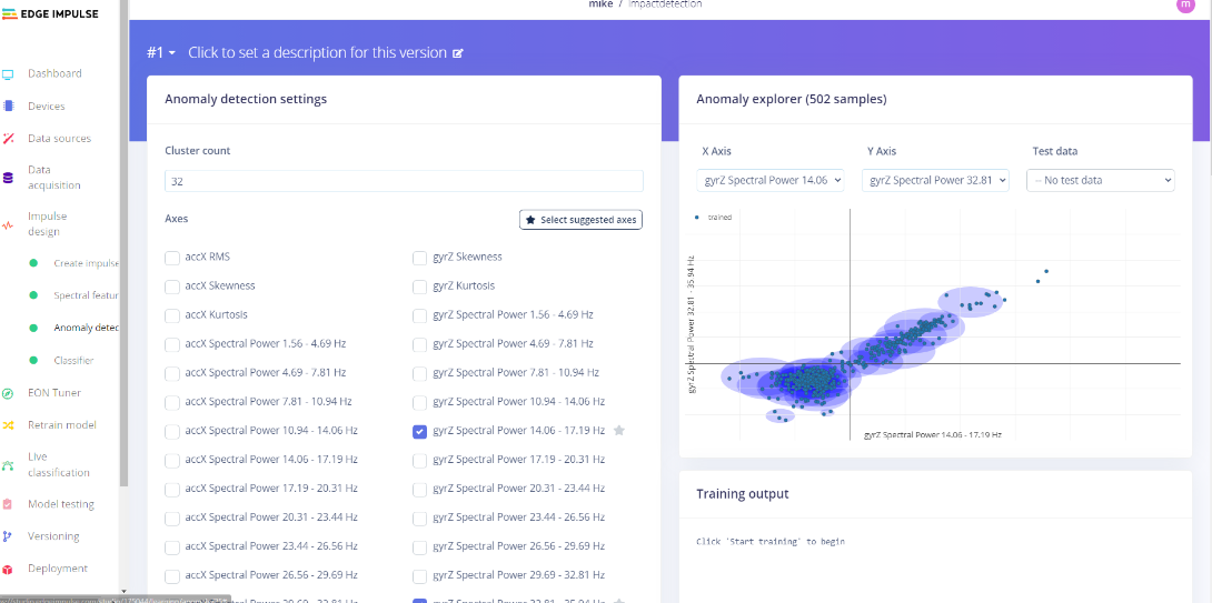 In the next part of the Edge Impulse blog series, we will discuss how to use the Edge Impulse training pipeline to analyze spectral components of the raw data and generate features, anomaly detection, and classifiers.
