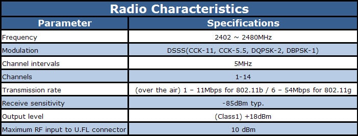 • On board ceramic chip antenna and U.FL connector for external antenna