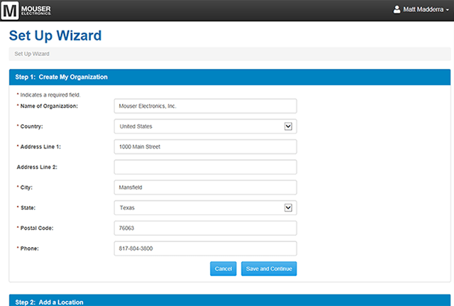 - Bước 1: Tạo Tổ chức của tôi - Hoàn thành mẫu đơn để cung cấp cho chúng tôi thông tin cơ bản về tổ chức của bạn. Nếu thông tin này đã được lưu trong tài khoản My Mouser của bạn, nó sẽ được tự động điền cho bạn.