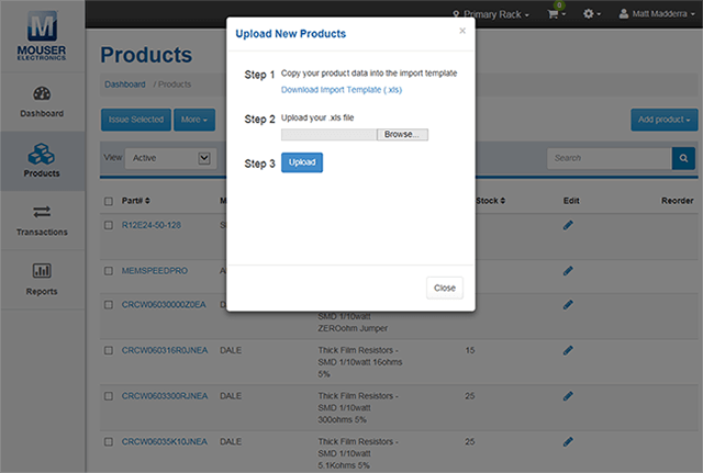 Nền tảng Quản lý Tồn kho bởi Mouser là hệ thống dựa trên web dành cho các tổ chức để dễ dàng quản lý và theo dõi tồn kho phụ tùng điện tử và vật tư liên quan tại chỗ.