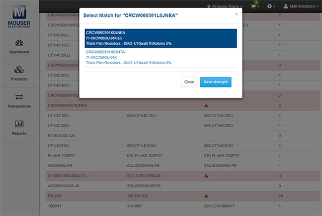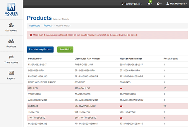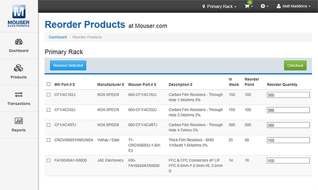 - Liên kết các sản phẩm trong kho của bạn với mã số sản phẩm của Mouser để dễ dàng đặt hàng lại