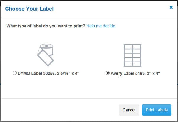 Khi in nhãn, bạn sẽ có tùy chọn lựa chọn định dạng giấy nhãn của mình. Hiện tại, hai tùy chọn định dạng bao gồm: